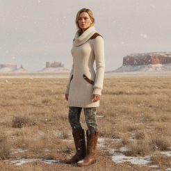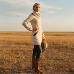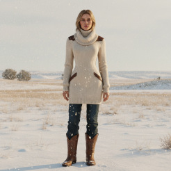 Casual Leather-Panelled Slim-Fit Turtleneck Knit Dress