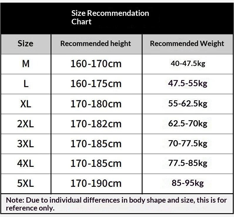 Sizes: M (Asian size), L (Asian size), XL (Asian size), 2XL (Asian size), 3XL (Asian size), 4XL (Asian size), 5XL (Asian size), S (European size), M (European size), L (European size), XL (European size), 2XL (European size), 3XL (European size)