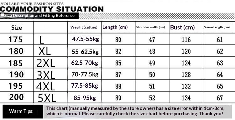 Sizes: 175 (47.5–55 kg), 180 (55–62.5 kg), 185 (62.5–70 kg), 190 (70–80 kg), 195 (80–90 kg), 200 (90–100 kg)