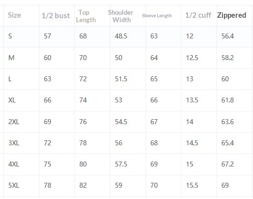 Sizes: S, M, L, XL, 2XL, 3XL, 4XL, 5XL