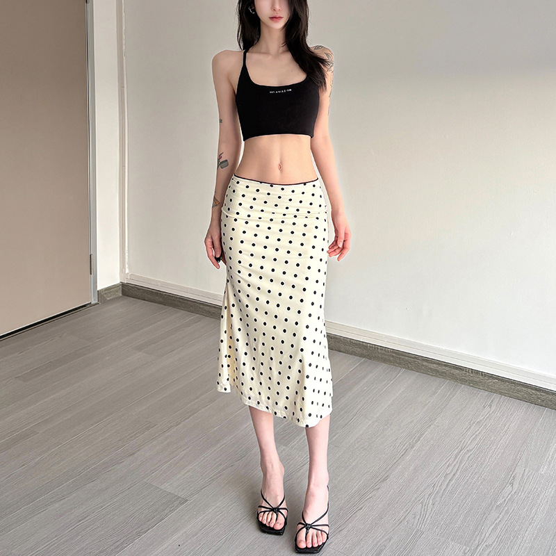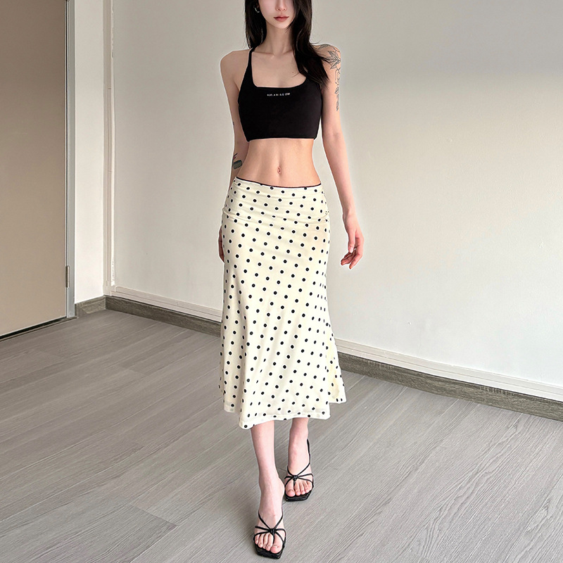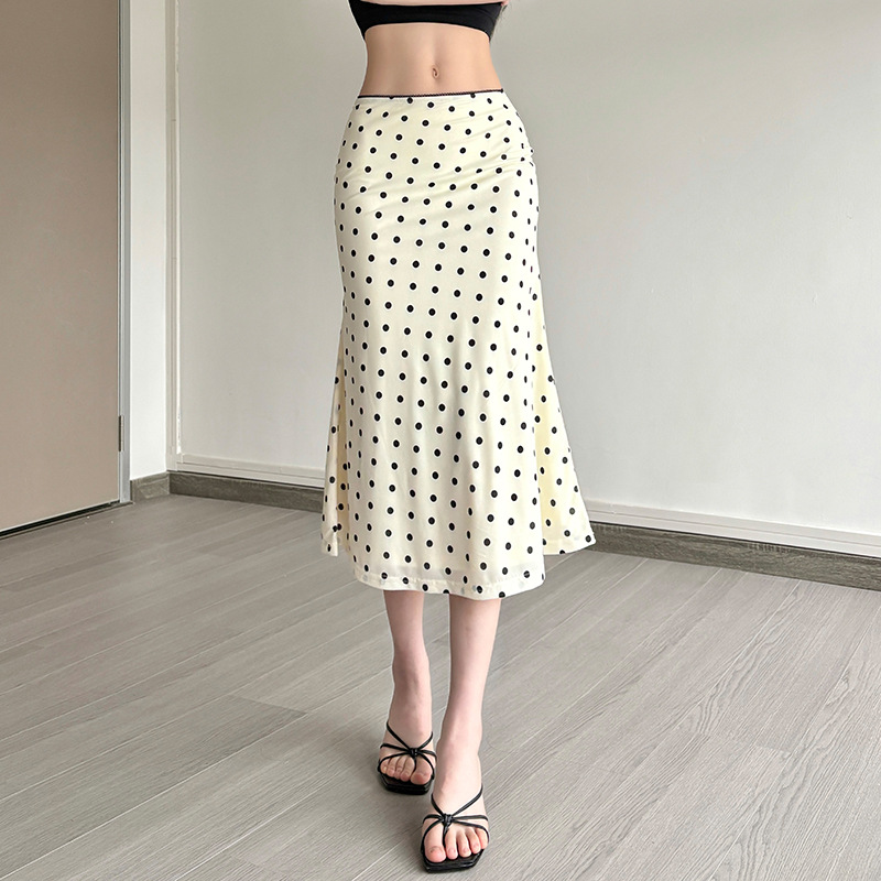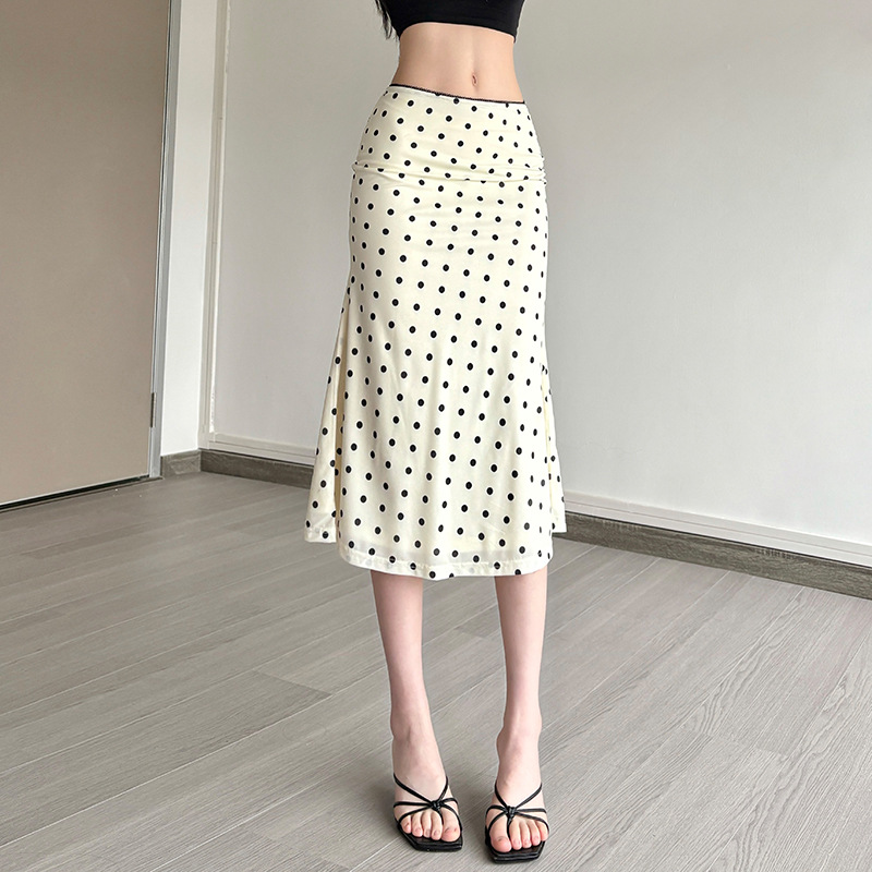 New Womens Fashion High-waisted Polka-dot Bodycon Skirt