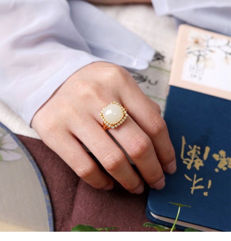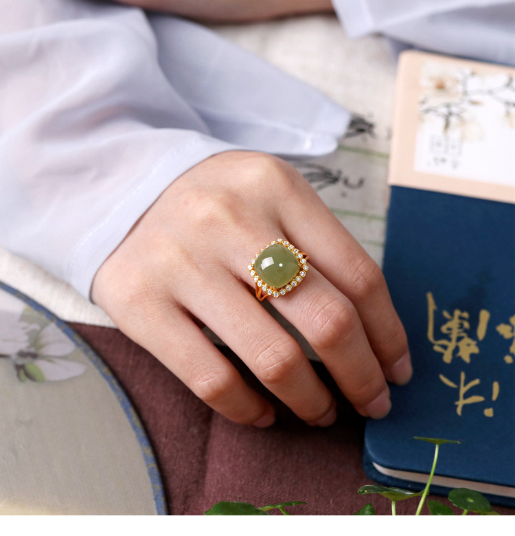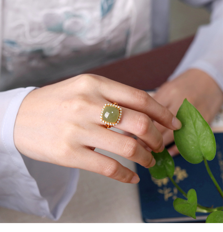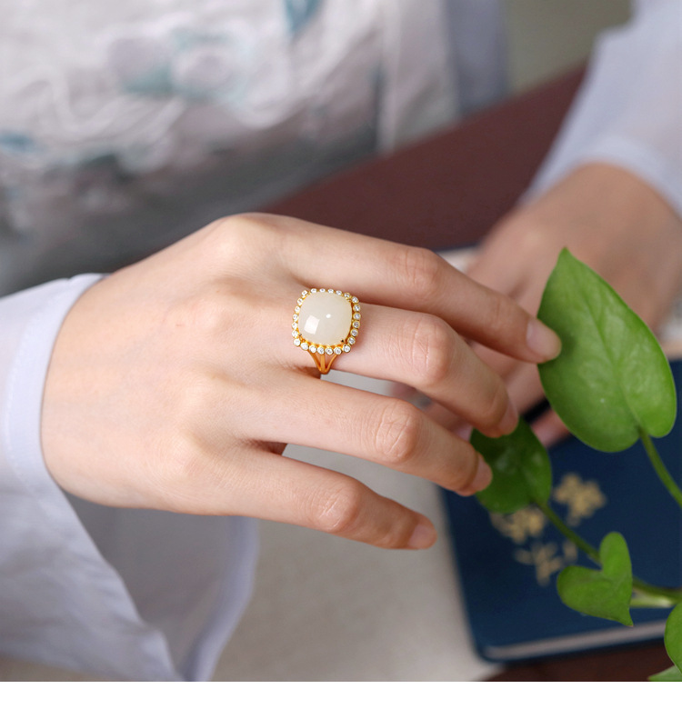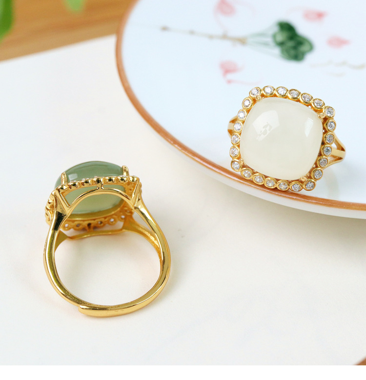 Colors: TJ-2318 “Square” Jade Ring, TJ-2318 “Square” White Jade Ring