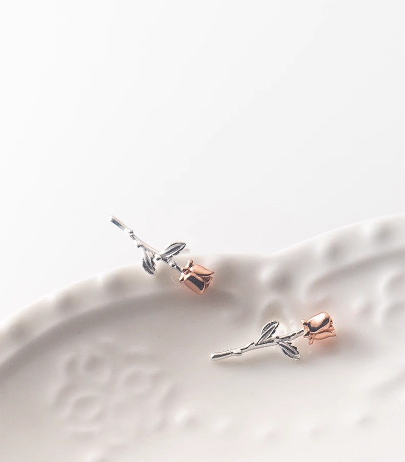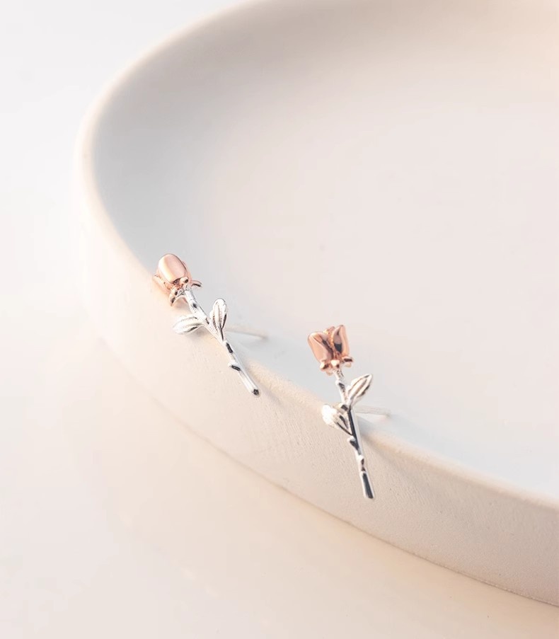 Silver Flower Stud Earrings A Sweet Rose Design For A Delicate Charming Look