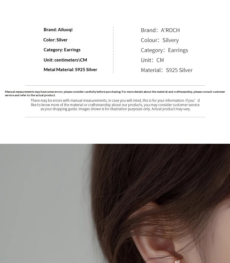 Color: A Pair of S925 Silver—Silver, A Pair of S925 Silver—Gold, A Pair of S925 Silver—Rose Gold