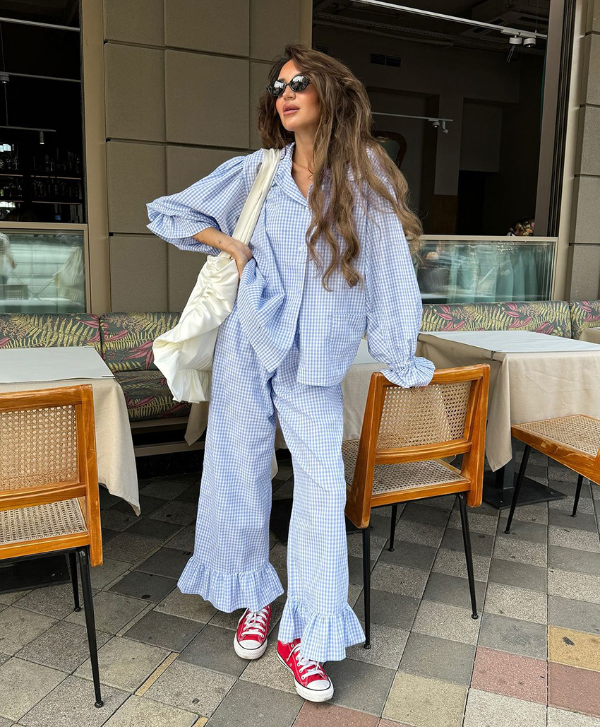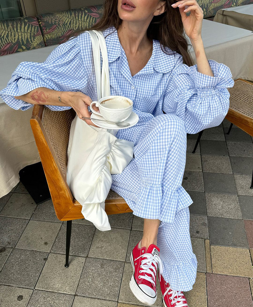 Womens Cozy And Casual Plaid Pants Set For Home Or Outdoors In Europe And America