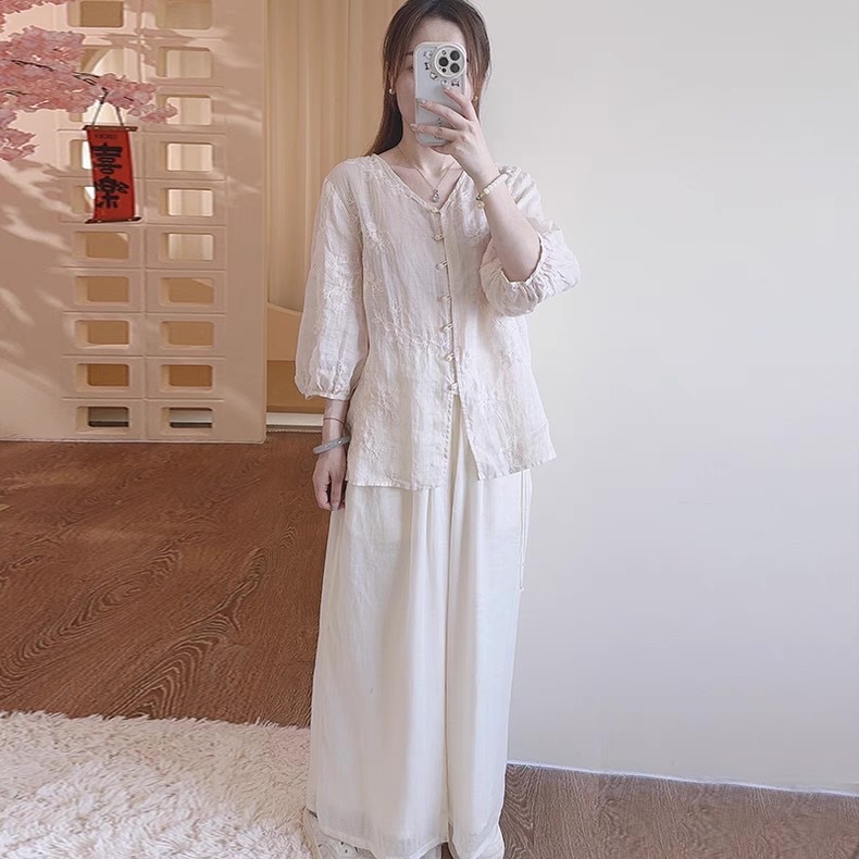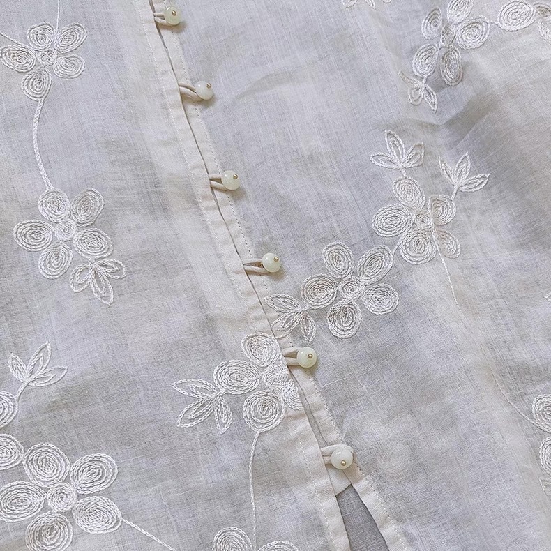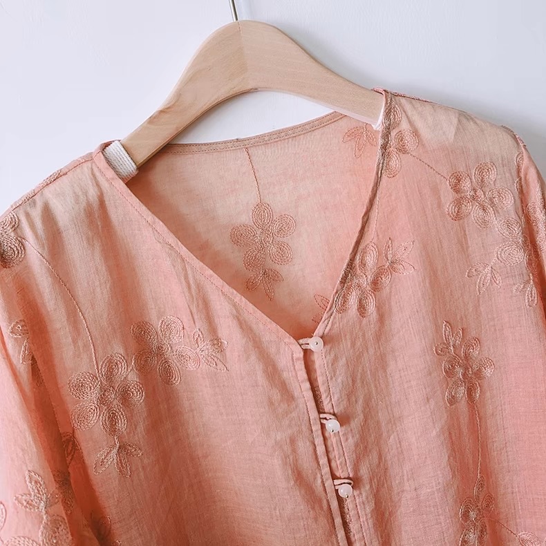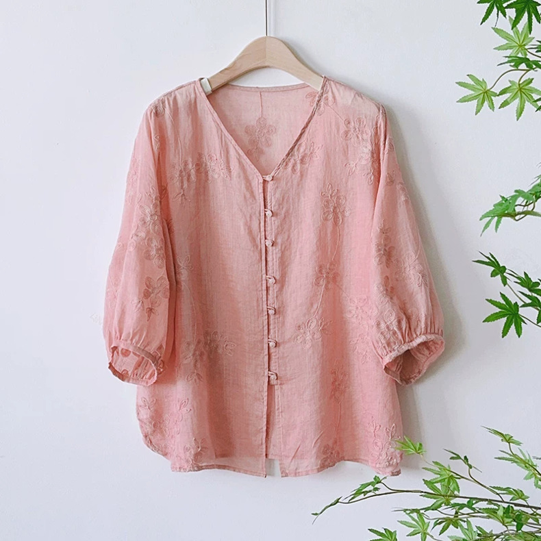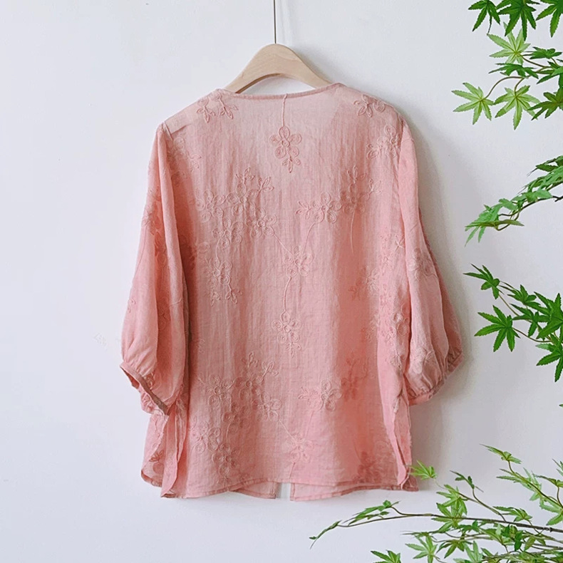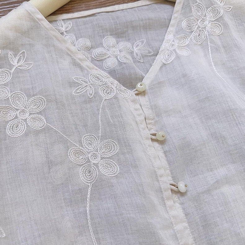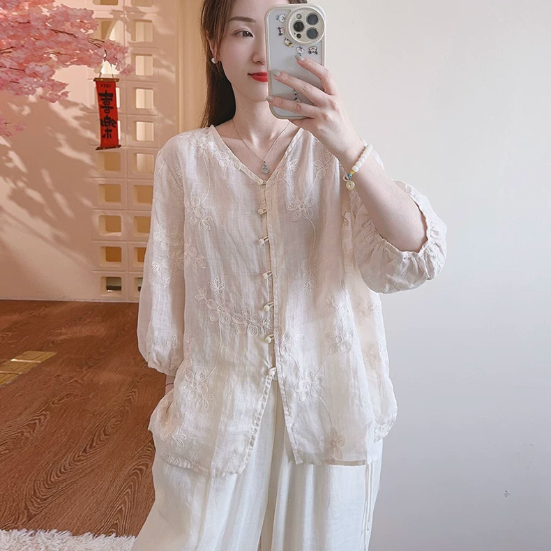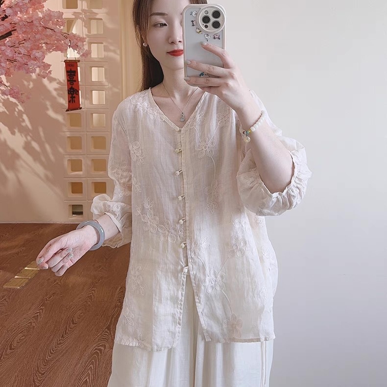 Womens New Chinese-Style Heavy Embroidery V-Neck Cotton-Linen ShirtCardigan